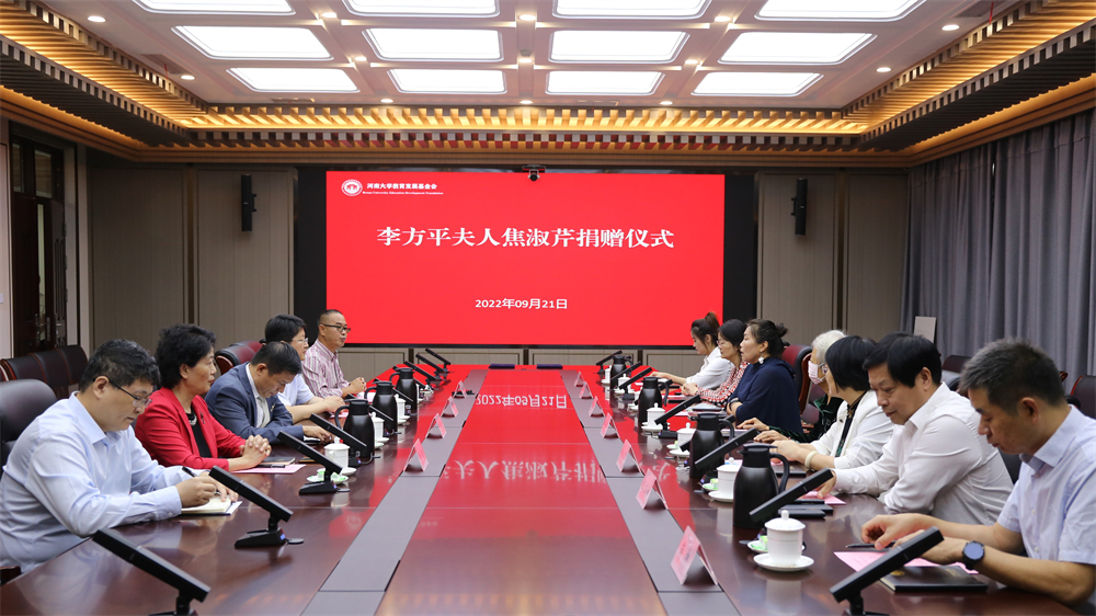 9月21日上午,李方平夫人焦淑芹捐赠仪式在开云在线郑州龙子湖校区友兰学堂三楼会议室举行。李方平的夫人焦淑芹、洛阳市人大常委会副主任雷雪芹、李方平先生家人王轶梅、李连勇、李晓红、蒋坤、李书瑶,校党委副书记季波、党委办公室主任裴强、教育发展基金会秘书长刘波以及相关工作人员参加本次捐赠仪式。仪式由校友总会与教育发展基金会副主任魏春吉主持。
