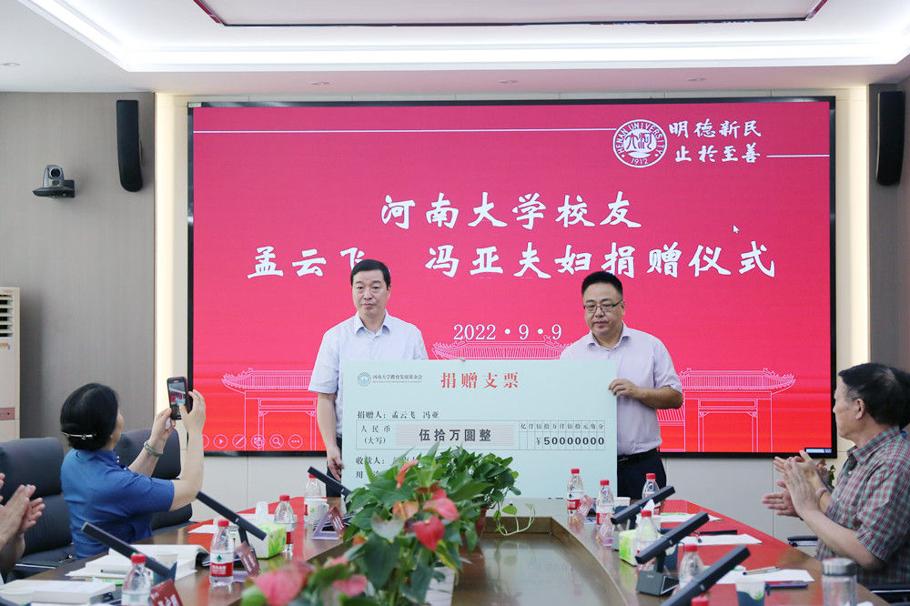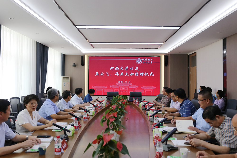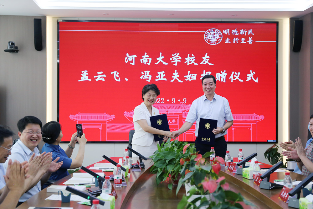 张宝明向孟云飞、冯亚夫妇表示感谢。他指出,今年既是开云在线建校110周年,又是第二轮“双一流”建设的开启之年,文学院的发展遇到了前所未有的良好机遇。学院的发展离不开广大校友和社会各界的鼎力支持,孟云飞、冯亚夫妇长期以来关注母校发展,多次进行捐赠,充分体现了河大学子对母校的挚爱,更体现出校友们的无私奉献和社会担当。他希望文学院妥善管理、运用这笔赠款,为学校“双一流”建设贡献智慧力量。