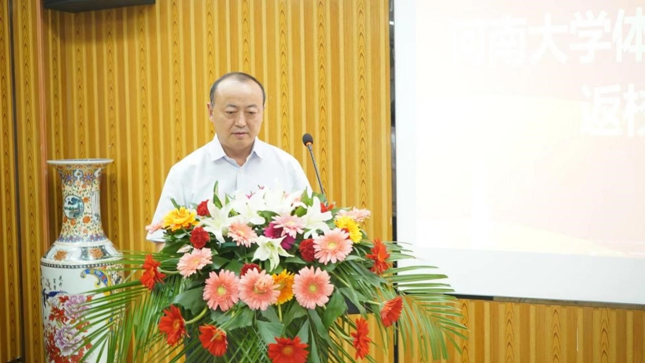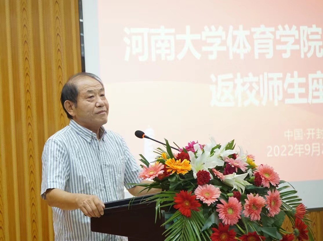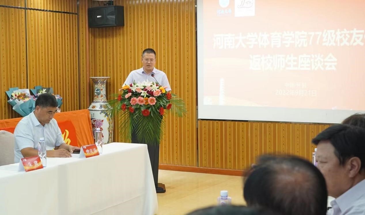 会议伊始,体育学院党委书记段廷良对在座老教师、校友表示热烈欢迎。他谈到,77级校友如今在河南省乃至全国的体育事业的各条战线上作出了突出贡献与成就,是铁塔体育人的榜样,是母校的光荣与骄傲。同时他对体育学院建校以来所培养的两万三千余名学子表达了欢迎和感谢,感谢他们对学校和学院的持续关注,欢迎大家常回母校看看。体育学院院长周珂同老教师和校友们回顾了体育学院自成立以来的发展历程,对校友在学院发展过程中汇聚力量、心系母校的情怀表达敬意与感谢。他表示,河大体育人将继续坚守以学生全面发展为中心、以学术自由发展为宗旨的基本教育理念,为国家培养出更多更优秀的体育人才。