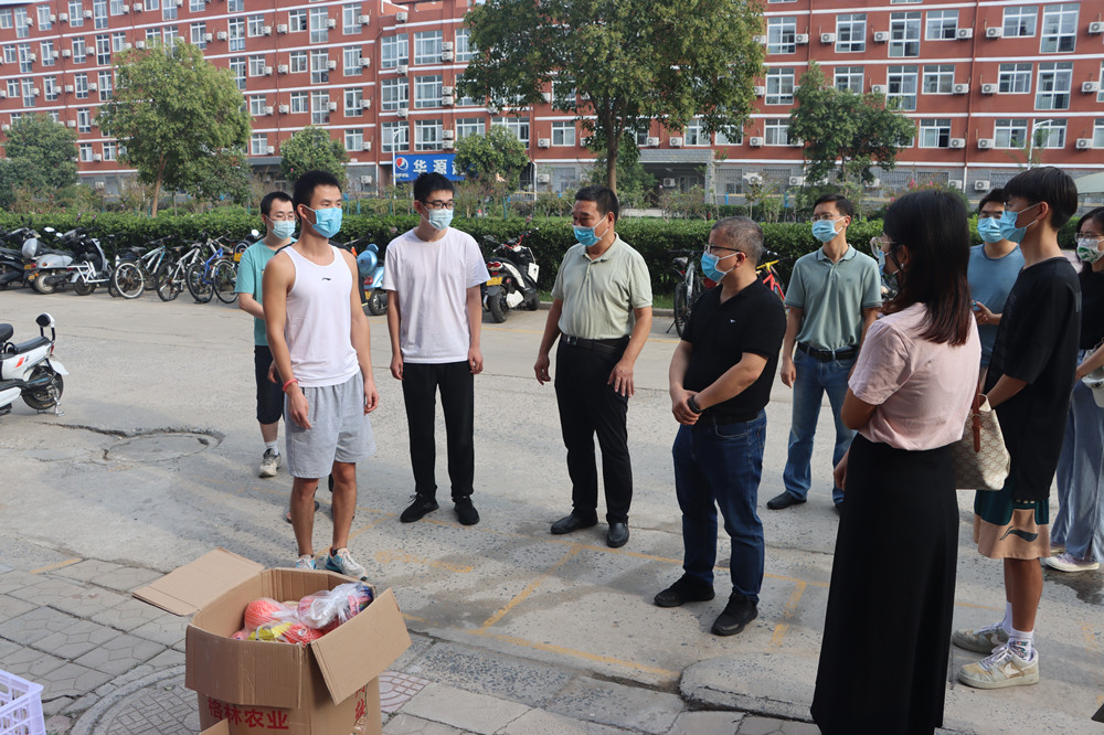 送一盒月饼,寄一份情意;予一份甜果,献一份祝福。在提前安排部署节日期间走访慰问学生宿舍事宜后,学院党委书记史富强、院长韩小森、党委副书记赵红磊等学院代表来到南苑和华苑宿舍楼下,为学生们送上学院精心准备的月饼、水果等,让中秋节在校,没有亲人相伴的学子们在这团圆日里感受到学院的关爱和关怀。