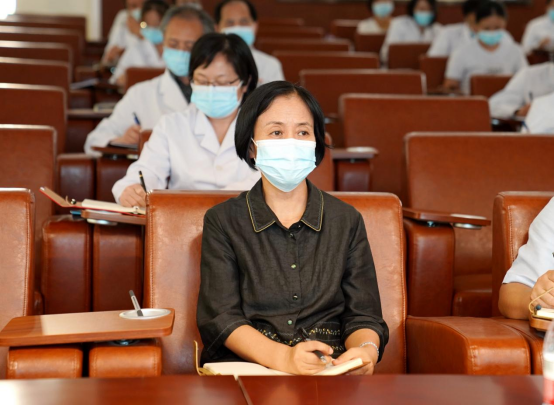 第一附属医院在11号楼厚德厅设主会场,并以“党支部及所辖临床科室”为单位设立多个分会场,医院党委书记张秋梅、院长张双林等在院院领导,教学督导组专家,各教研室主任、教学秘书、骨干教师以及相关职能部门人员收听收看了讲座。医院党委副书记、纪委书记刘建勇主持讲座。