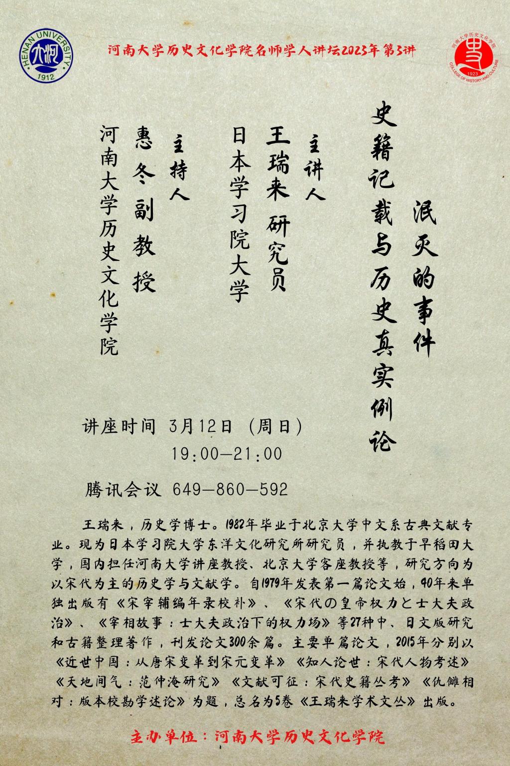 王瑞来:泯灭的事件:史籍记载与历史真实例论(时间:3.12)