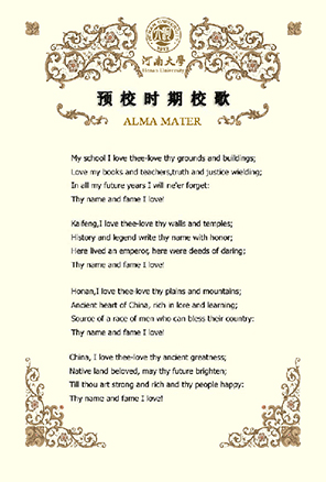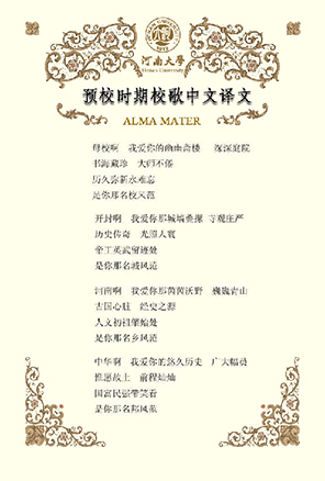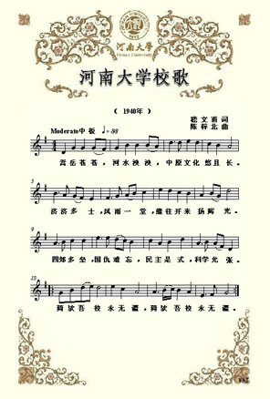 "四郊多垒,国仇难忘。"日寇的暴行,并没有吓倒河大人。"济济多士"在苍苍嵩岳下,泱泱黄河边,"风雨一堂",坚守"悠且长"的"中原文化",追求民主与科学,为抗战和建设培养人才。此后一代又一代的河大人高唱校歌,奋发图强,传承河大精神,创造出开云在线的辉煌历史。